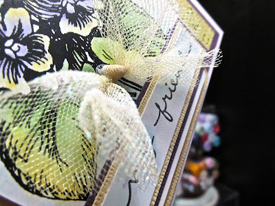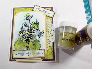We will not be coloring but using a water brush filled with 99% Isopropyl Alcohol. (This is rubbing alcohol for most folks.) Next you will need a piece of acetate or plastic of any kind to use as your pallet. The perfect surface is to use your acrylic stamp handle. The Stampendous Jumbo Perfectly Clear Handle is ideal for stamping large stamps with great detail and as a palette on the go!