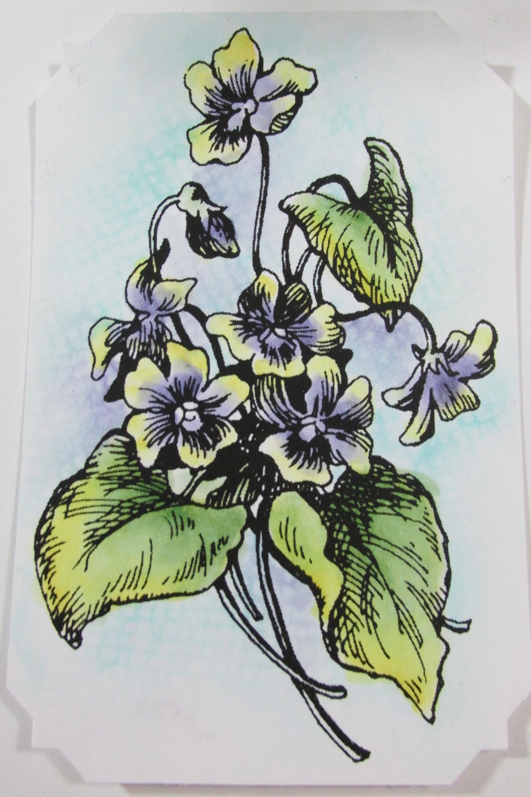 Starting with the background place the tip of the brush next to the line with you want your darkest color . then smush and drag out ward. The lighter the color the less you will see the color until the alcohol dries. I added the contrast purple after the blue.